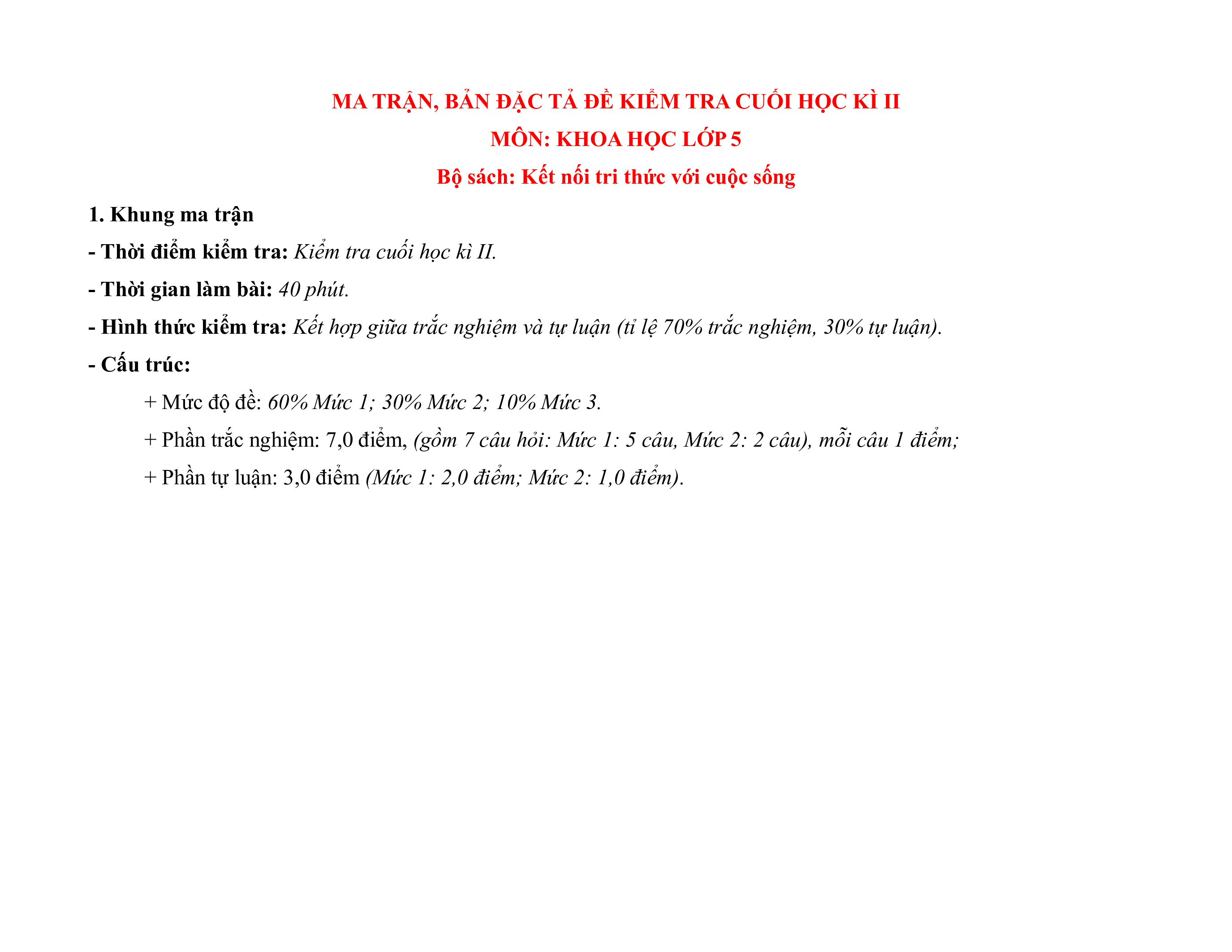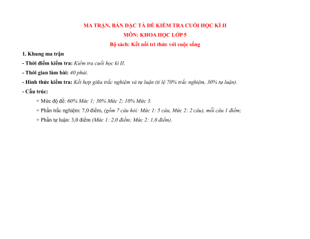 - Tailieugiaovien.com.vn giới thiệu bộ 5 đề Cuối kì 2 gồm đầy đủ ma trận và lời giải chi tiết môn Khoa học lớp 5 Kết nối tri thức mới nhất năm 2026 nhằm giúp Giáo viên có thêm tài liệu tham khảo ra đề thi Khoa học lớp 5.