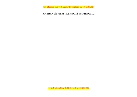 MA TRẬN ĐỀ KIỂM TRA HỌC KÌ 2 SINH HỌC 12
