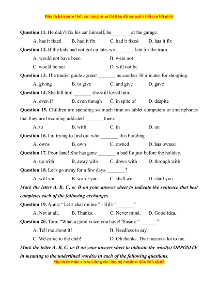 Chúng tôi đảm bảo đủ số lượng đề đã cam kết hoặc có thể nhiều hơn, tất cả có BẢN WORD, LỜI GIẢI CHI TIẾT và tải về dễ dàng.