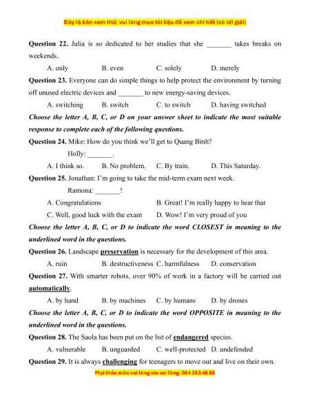 Chúng tôi đảm bảo đủ số lượng đề đã cam kết hoặc có thể nhiều hơn, tất cả có BẢN WORD, LỜI GIẢI CHI TIẾT và tải về dễ dàng.