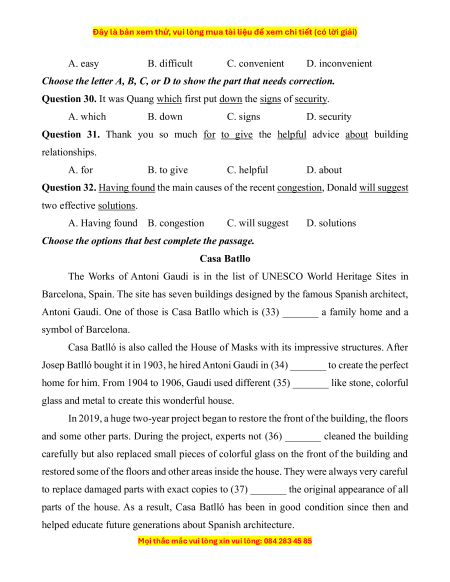 home for him. From 1904 to 1906, Gaudi used different (35) _______ like stone, colorful