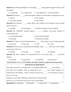 Circle the letter A, B, C, or D to indicate the options that best complete the announcement. OUR OCEANS NEED HELP!