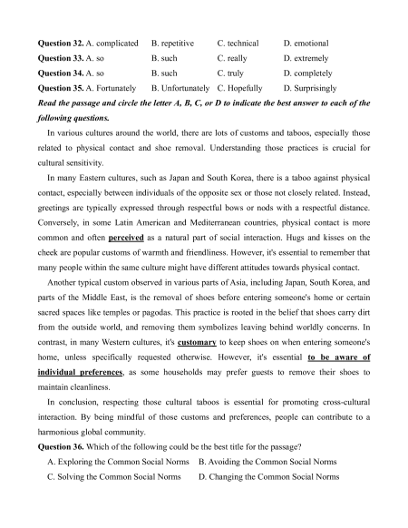 Circle the letter A, B, C, or D to indicate the options that best complete the passage.