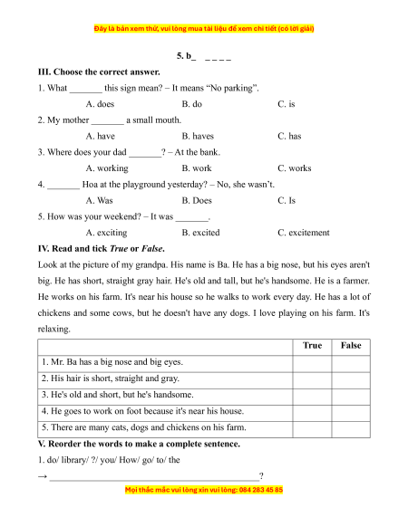4. turn right 5. by taxi Dịch: 1. hair (n): mái tóc