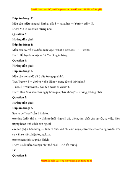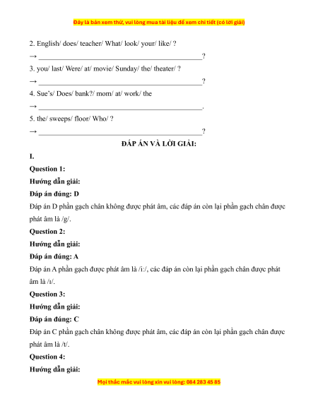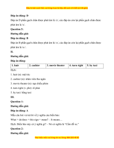 ĐÁP ÁN VÀ LỜI GIẢI: I. Question 1: Hướng dẫn giải: Đáp án đúng: D
