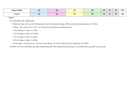 – Số điểm của câu tự luận được quy định trong hướng dẫn chấm nhưng phải tương ứng với tỉ lệ điểm được quy định trong ma trận.