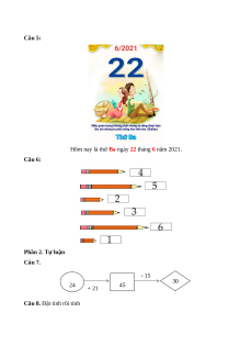 Hôm nay là thứ Ba ngày 22 tháng 6 năm 2021. Câu 6: Phần 2. Tự luận Câu 7. 15 30 24 45 + 21