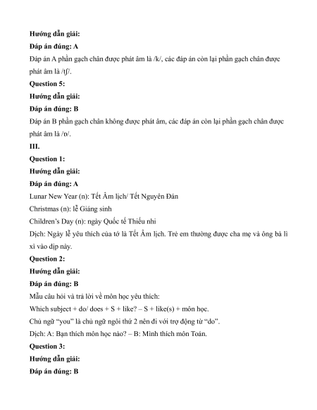 Đáp án C phần gạch chân được phát âm là /ɡ/, các đáp án còn lại phần gạch chân được phát âm là /dʒ/. Question 3: Hướng dẫn giải: Đáp án đúng: A