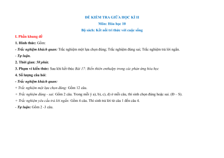 Bộ sách: Kết nối tri thức với cuộc sống I. Phần khung đề 1. Hình thức: Gồm: