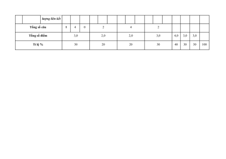 lượng liên kết Tổng số câu 8 4 0 2 4 2 Tổng số điểm 3,0 2,0 2,0 3,0 4,0 3,0 3,0 Tỉ lệ % 30 20 20 30 40 30 30 100