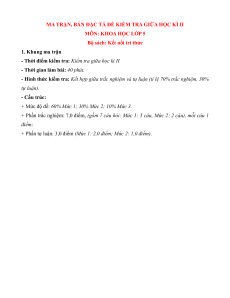 MA TRẬN, BẢN ĐẶC TẢ ĐỀ KIỂM TRA GIỮA HỌC KÌ II