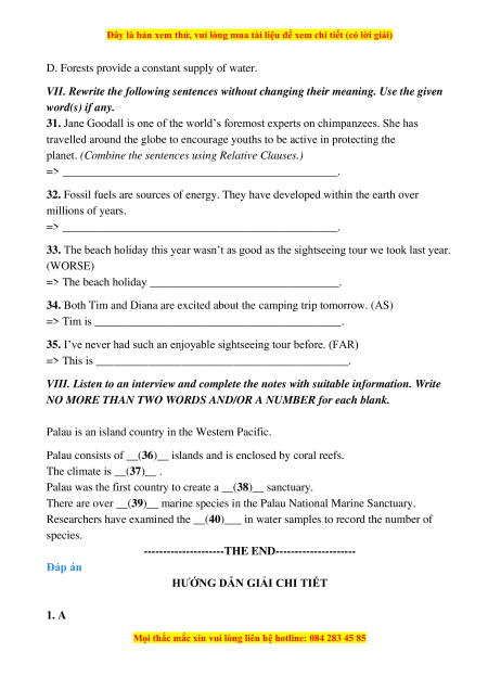 Chúng tôi đảm bảo đủ số lượng đề đã cam kết hoặc có thể nhiều hơn, tất cả có BẢN WORD, LỜI GIẢI CHI TIẾT và tải về dễ dàng.