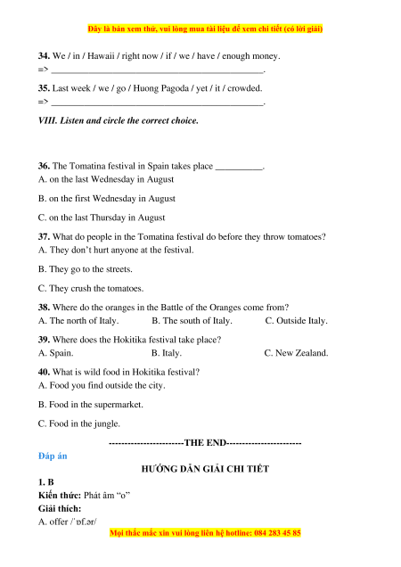 3. A. festival B. celebrate C. Vietnamese D. usually