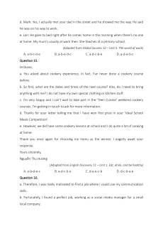 (Adapted from English Discovery 11 – Unit 1. Eat, drink, and be healthy) A. a-b-d-e-c B. a-d-c-b-e C. d-a-e-c-b D. d-c-b-a-e Question 16.