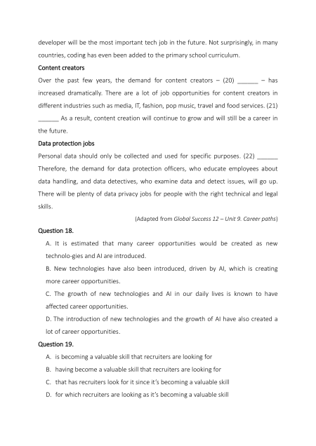 Technology has brought a lot of changes to our lives. (18) ______ Here are some jobs