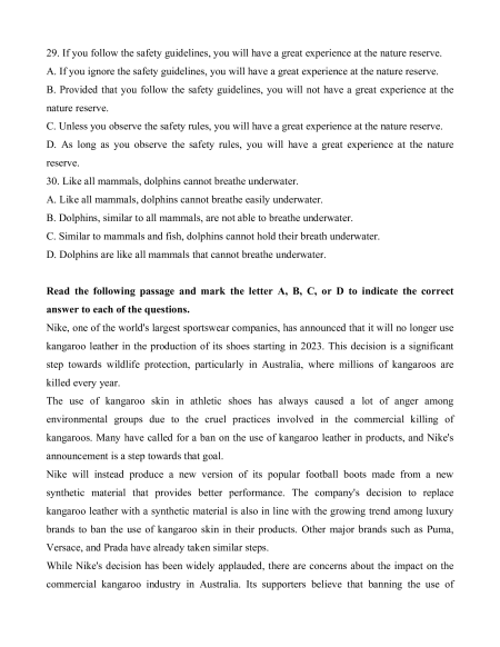 Read the following passage and mark the letter A, B, or D to choose the word or phrase