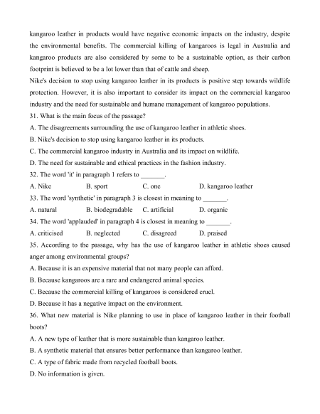 kangaroos. Many have called for a ban on the use of kangaroo leather in products, and Nike's