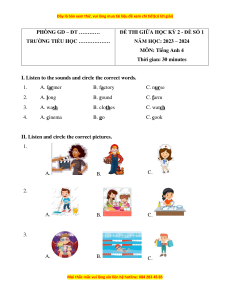 NĂM HỌC: 2023 – 2024 MÔN: Tiếng Anh 4
