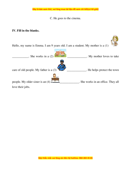 Hello, my name is Emma. I am 9 years old. I am a student. My mother is a (1)