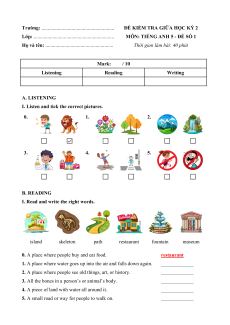 Thời gian làm bài: 40 phút Mark: / 10 Listening Reading Writing A. LISTENING