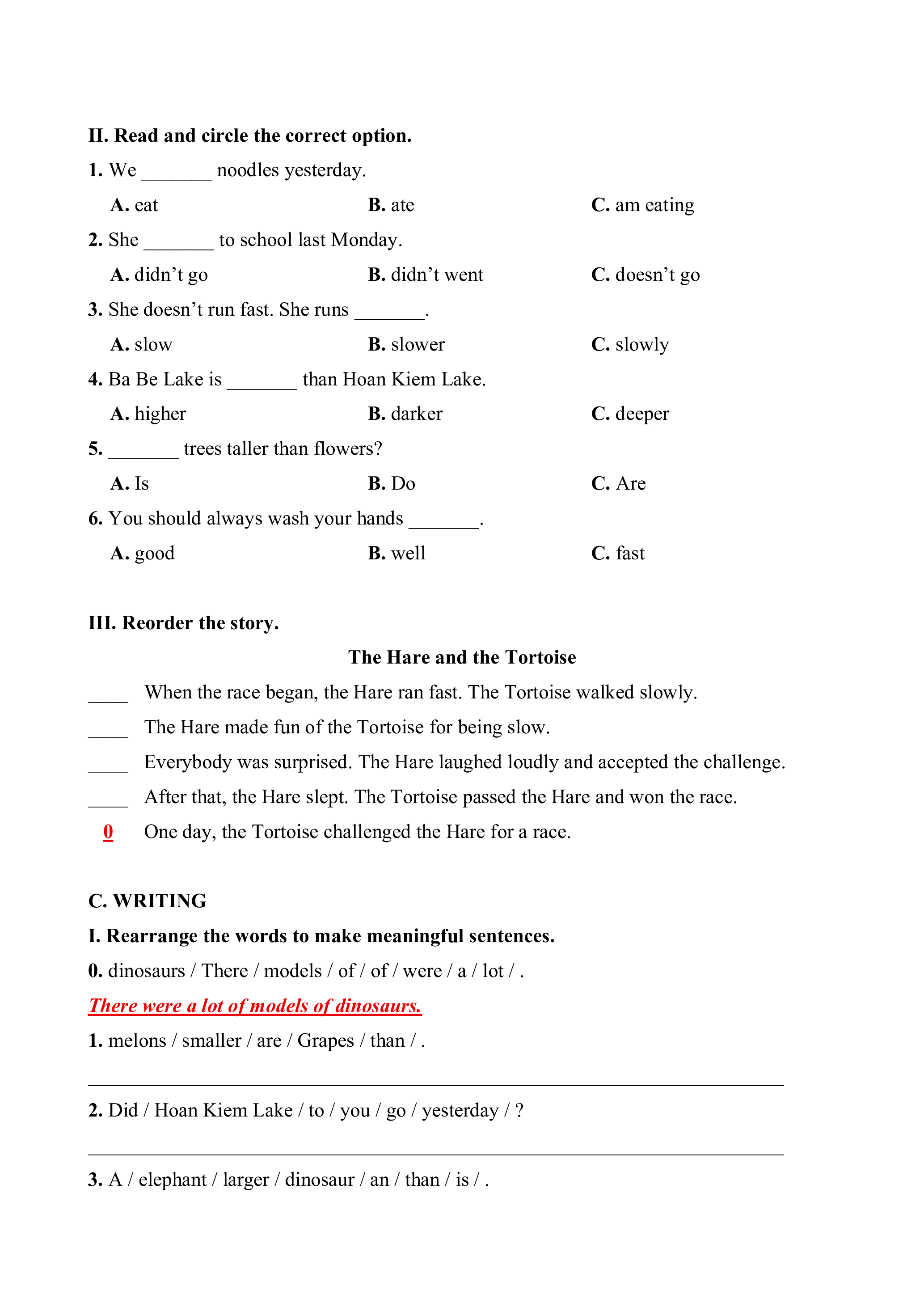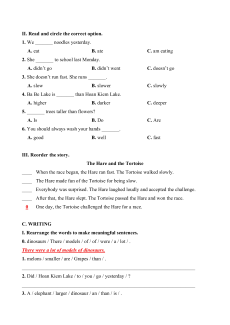 4. After that, the Hare slept. The Tortoise passed the Hare and won the race. C. WRITING