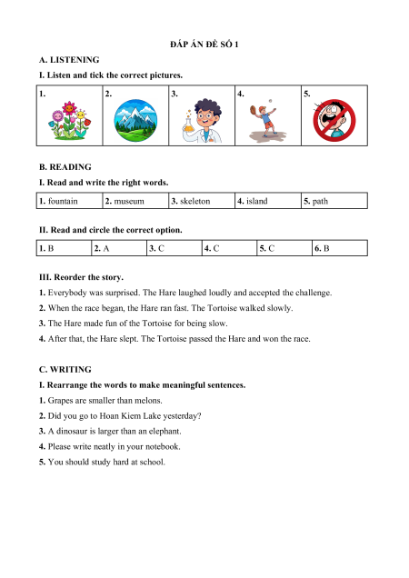 _____________________________________________________________________ ----- THE END ----- ĐÁP ÁN ĐỀ SỐ 1 A. LISTENING