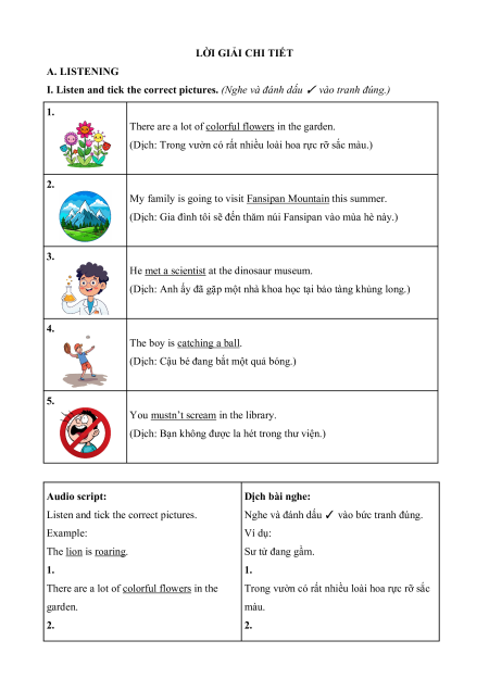 I. Listen and tick the correct pictures. 1. 2. 3. 4. 5. B. READING