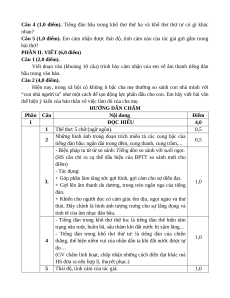 thể hiện ý kiến của bản thân về việc làm đó của cha mẹ. HƯỚNG DẪN CHẤM Phần Câu Nội dung Điểm I ĐỌC HIỂU 4,0 1