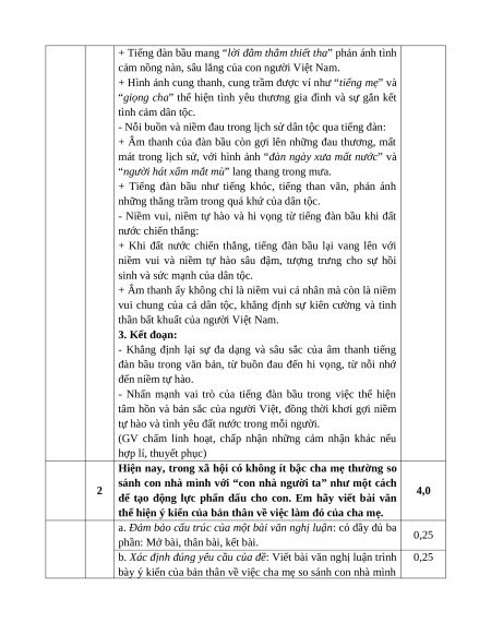 Câu 4 (1,0 điểm). Tiếng đàn bầu trong khổ thơ thứ ba và khổ thơ thứ tư có gì khác nhau?
