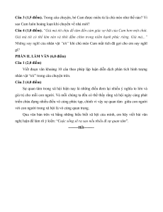 nhân vật “tôi” trong câu chuyện trên. Câu 2 (4,0 điểm)