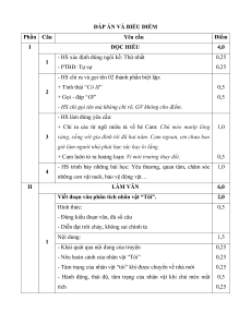 ĐÁP ÁN VÀ BIỂU ĐIỂM Phần Câu Yêu cầu Điểm I ĐỌC HIỂU 4,0