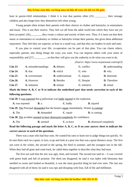 (Source: https://www.woyaosouti.com/topi3) Câu 23. A. misunderstandings B. debates C. conflict D. understanding Câu 24. A. that B. which C. who D. why Câu 25. A. overestimate B. underestimate C. impose D. dominate Câu 26. A. However B. Besides C. Despite D. Therefore Câu 27. A. initiation B. initiate C. initiative D. initial