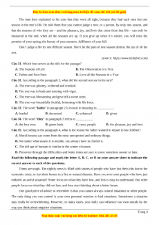 Câu 31. Which best serves as the title for the passage? A. The Seasons of Life