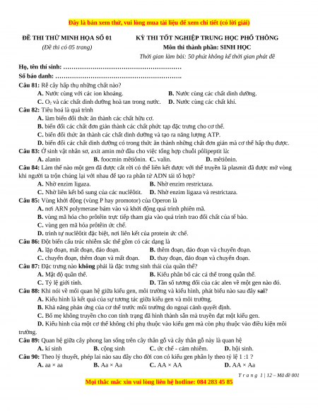 ĐỀ THI THỬ MINH HỌA SỐ 01