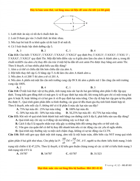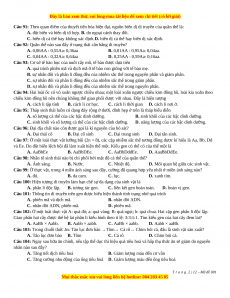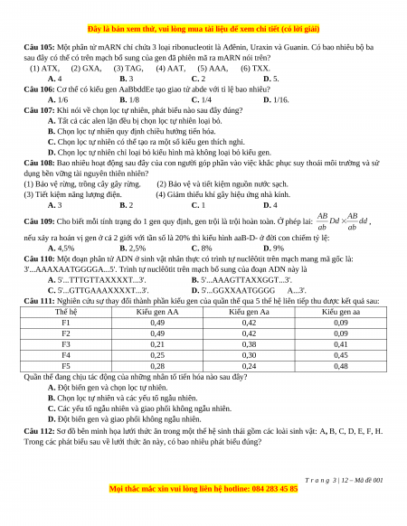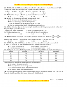 Câu 105: Một phân tử mARN chỉ chứa 3 loại ribonucleotit là Ađênin, Uraxin và Guanin. Có bao nhiêu bộ ba