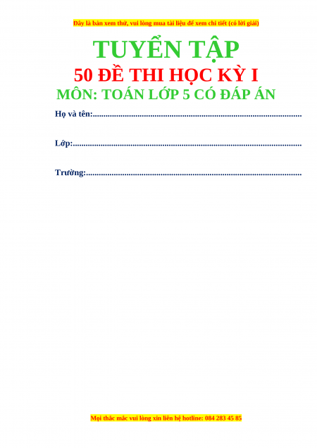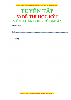 - Tailieugiaovien.com.vn giới thiệu bộ 50 đề thi Toán 5 Học kì 1 có lời giải chi tiết, mới nhất năm 2023 nhằm giúp Giáo viên có thêm tài liệu tham khảo ra đề thi Toán lớp 5.