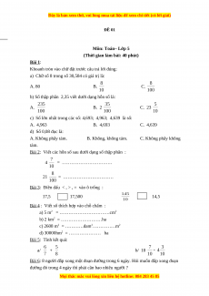 ĐỀ 01 Môn: Toán– Lớp 5