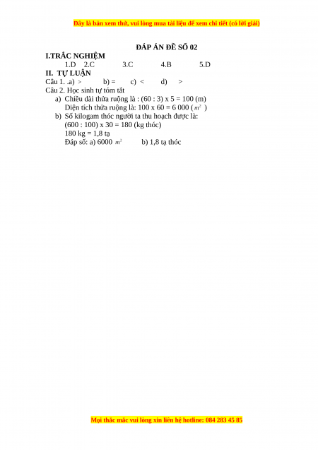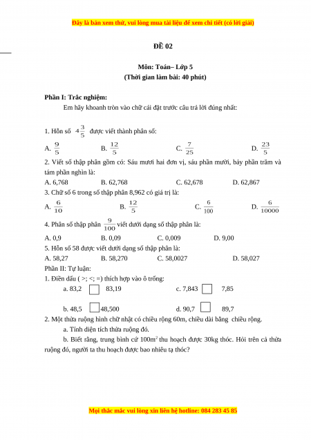 ĐỀ 02 Môn: Toán– Lớp 5