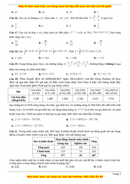 bình cộng của x và y. A. . B. . C. . D. . Câu 18. Cho . Tính . A. . B. . C. . D. .