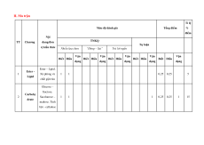 Mức độ đánh giá Tổng điểm % điểm Nội TNKQ TT Chương dung/đơn Tự luận vi ̣kiến thức Nhiều lựa chọn “Đúng – Sai” Trả lời ngắn Vận Vận Vận Vận Vận Biết Hiểu Biết Hiểu Biết Hiểu Biết Hiểu Biết Hiểu dụng dụng dụng dụng dụng Ester – Lipid. Ester - 1 Xà phòng và 1 1 0,25 0,25 5 Lipid chất giặt rửa Glucose – fructose. Carbohy 2 Saccharose – 1 1 1 0,25 0,25 1 15 drate maltose. Tinh bột - cellulose Amine 1 1