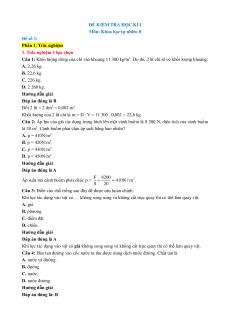 Môn: Khoa học tự nhiên 8 Đề số 1: Phần 1. Trắc nghiệm