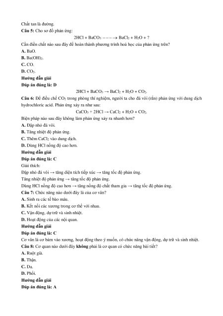 Câu 6: Để điều chế CO2 trong phòng thí nghiệm, người ta cho đá vôi (rắn) phản ứng với dung dịch