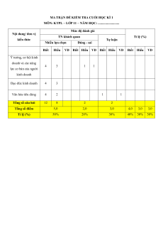 MA TRẬN ĐỀ KIỂM TRA CUỐI HỌC KÌ 1