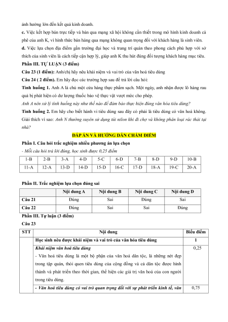 Câu 20: Để xây dựng văn hóa tiêu dùng Việt Nam, người tiêu dùng cần phải