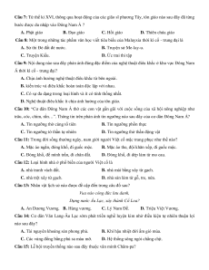 Câu 3: Từ thế kỉ X đến thế kỉ XV, những quốc gia thống nhất và lớn mạnh đã ra đời ở Đông Nam Á như: A. Ăng-co. B. Phù Nam. C. Thái Lan. D. Đông Ti-mo.