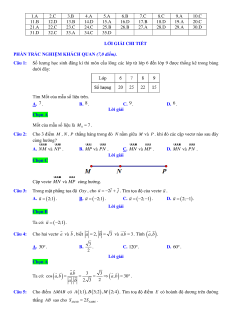 Câu 28: Trong mặt phẳng tọa độ, cặp vectơ nào sau đây vuông góc với nhau?