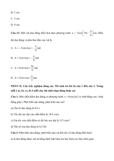 Câu 12: Một vật dao động điều hoà theo phương trình x –5cos 5 t – cm. Biên 6