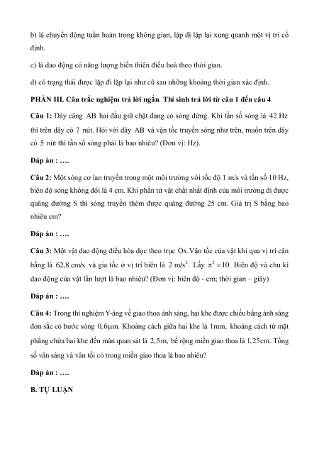 Câu 11: Một sóng cơ truyền dọc theo trục Ox. Phương trình dao động của phần tử tại