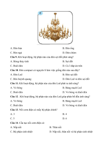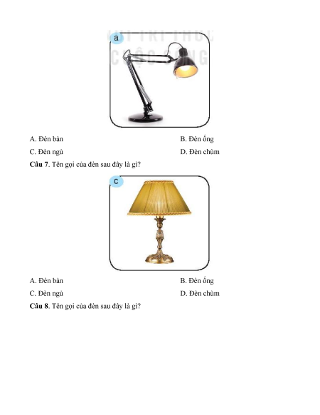 Câu 8. Tên gọi của đèn sau đây là gì? A. Đèn bàn B. Đèn ống C. Đèn ngủ D. Đèn chùm