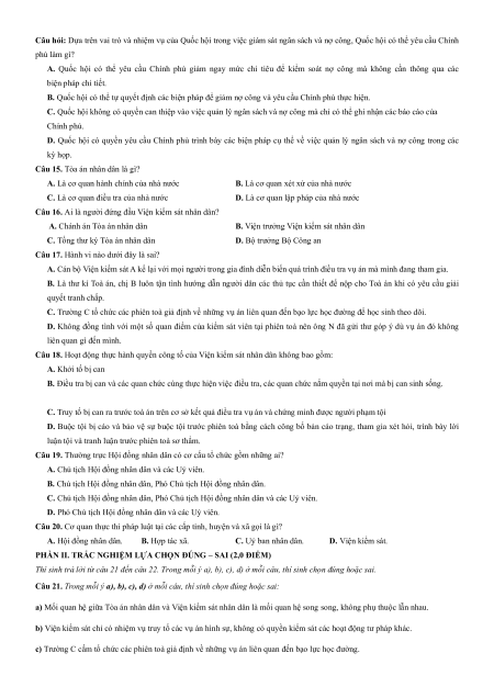 4. Tòa án nhân dân và Viện kiểm 2 1/2 1/2 (0,5 sát nhân dân (0,5 đ) (0,5đ) ( 0,5đ) đ) 2